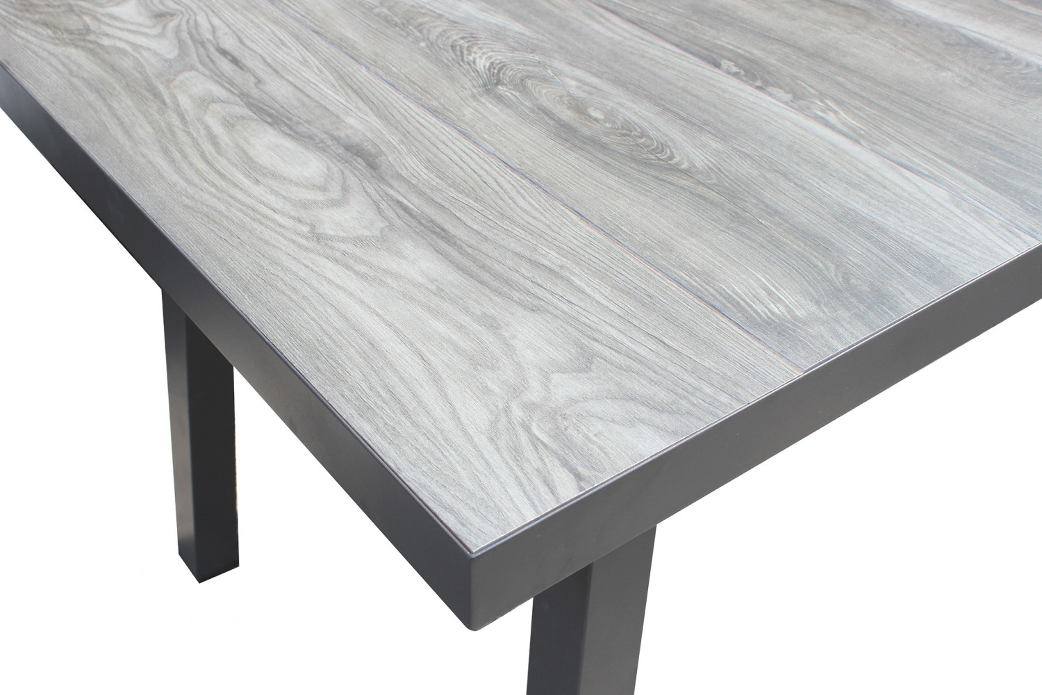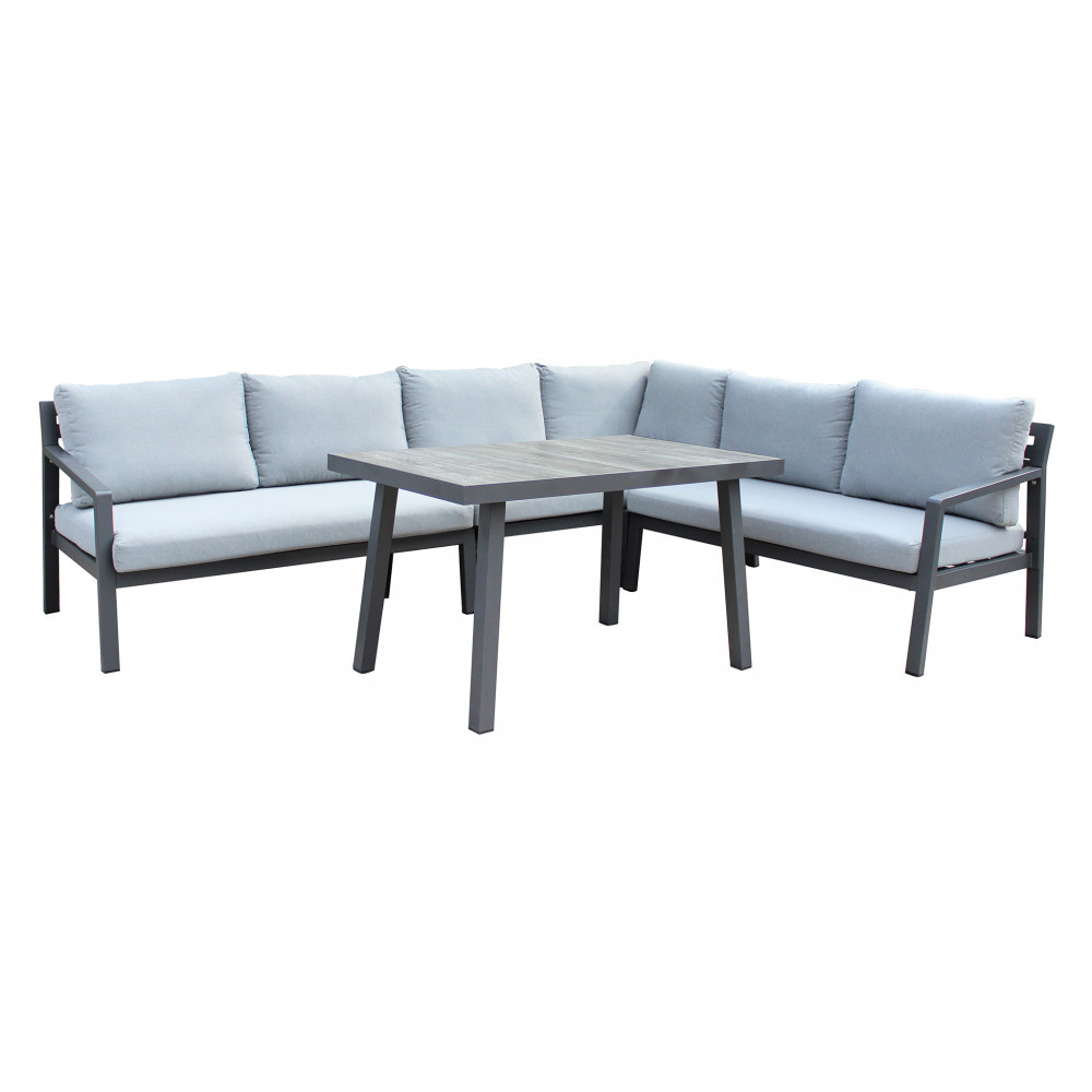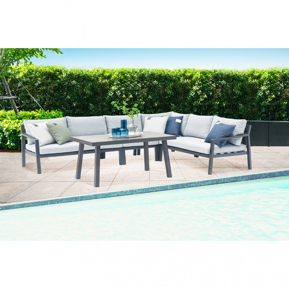 Questo set per giardino è stato concepito con materiali resistenti e adatti all’esterno, la struttura è in alluminio verniciato di colore antracite o bianco.