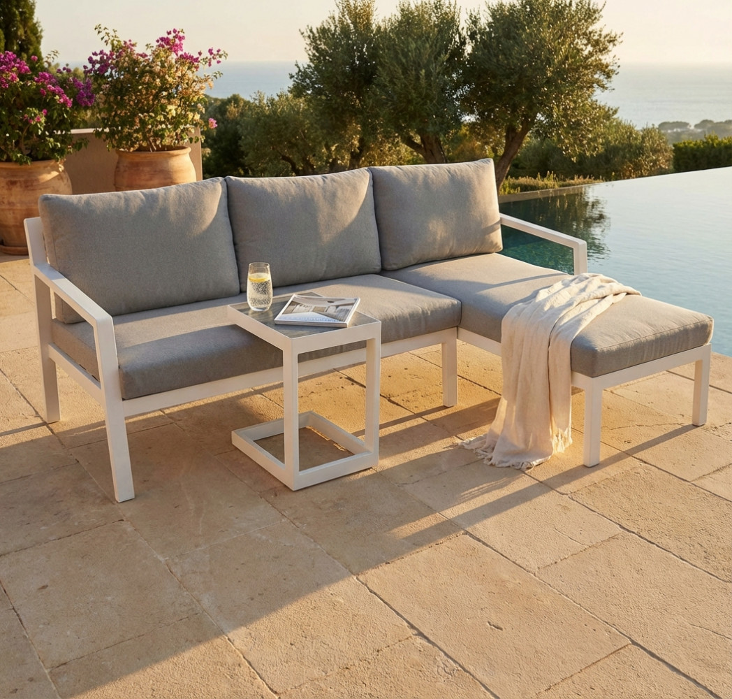Questo divano da esterno in alluminio incarna il piacere del relax all’aria aperta, trasformando ogni spazio outdoor in un’oasi di benessere, ideale per ritagliarsi attimi di quiete o per condividere momenti speciali con amici e famiglia. Immagina di sprofondare nei suoi soffici cuscini al termine di una giornata intensa, circondato dal verde del tuo giardino o dalla vista rilassante della terrazza.