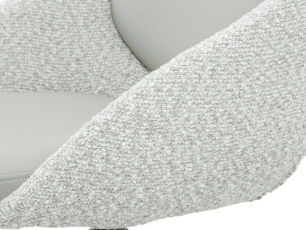 La sedia Averik è la perfetta combinazione di design moderno e comfort avvolgente. Le gambe in acciaio garantiscono stabilità e resistenza, mentre il rivestimento in tessuto effetto bouclé dona carattere e raffinatezza alla struttura. La cuscineria rivestita in similpelle con imbottitura assicura una seduta confortevole e accogliente, ideale per l’uso quotidiano.