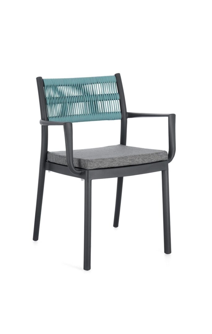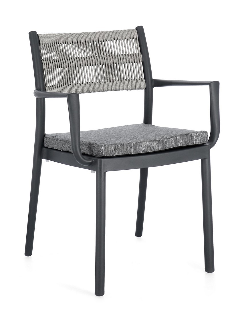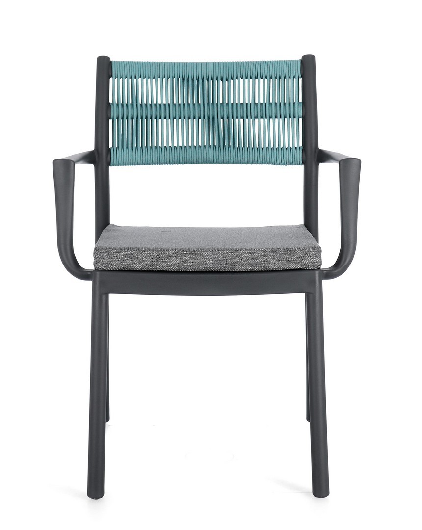 Sedia con braccioli Alvin, struttura della sedie in polipropilene, quindi resistente ai raggi Uv.