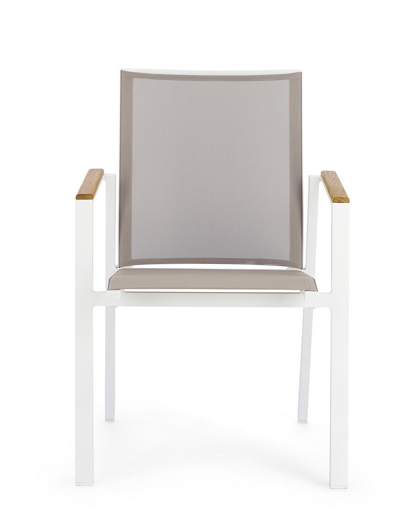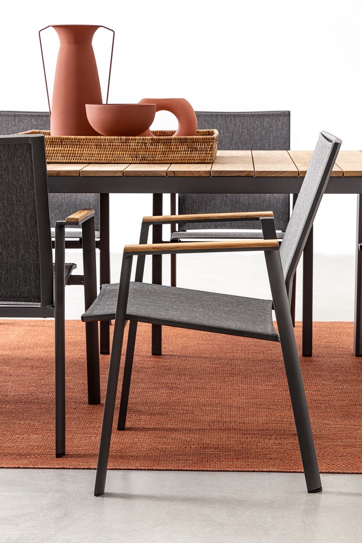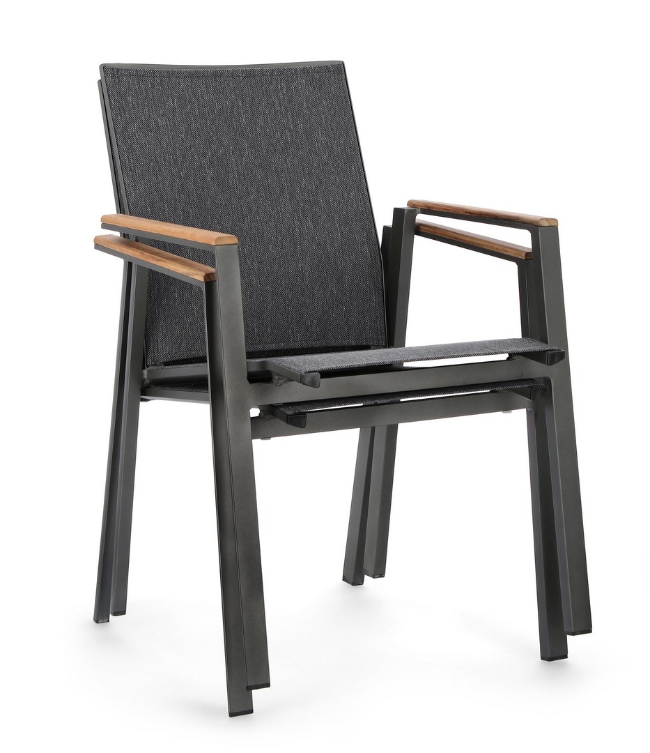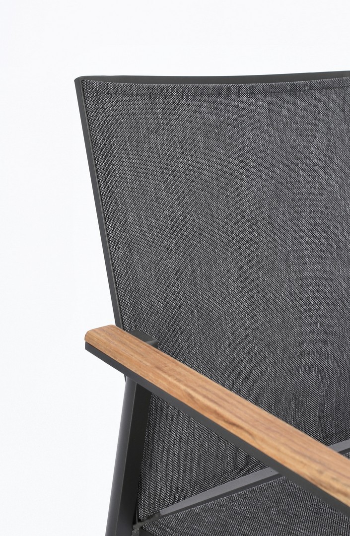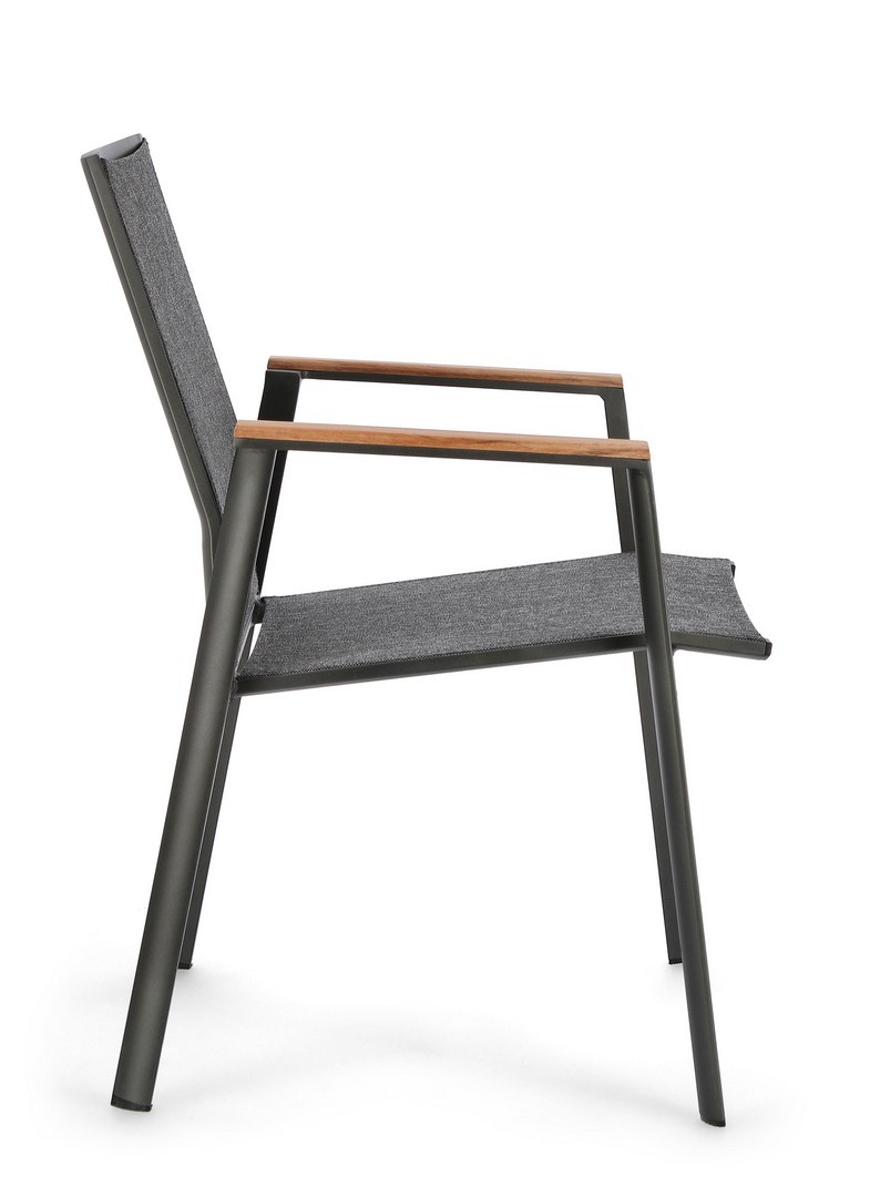 SEDIA C-BR CAMERON, struttura della sedie in alluminio verniciato a polvere. Braccioli con inserti in legno di teak.