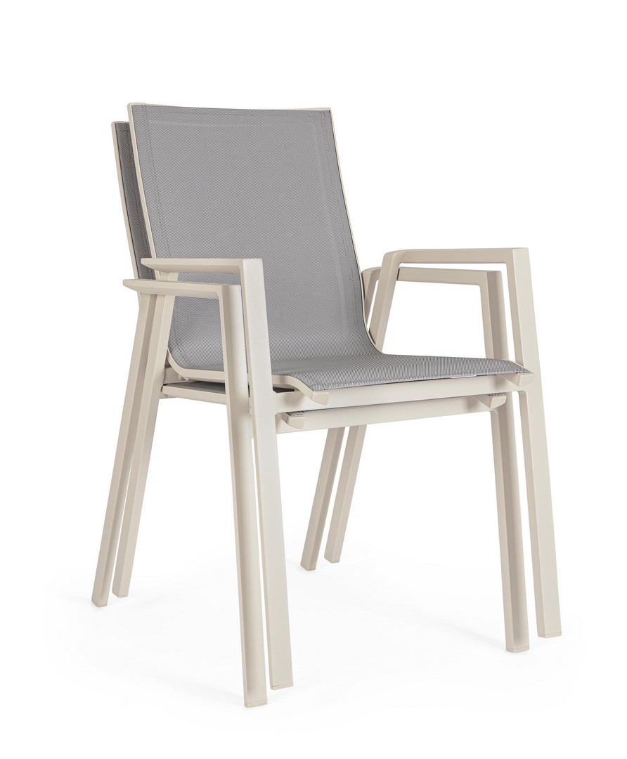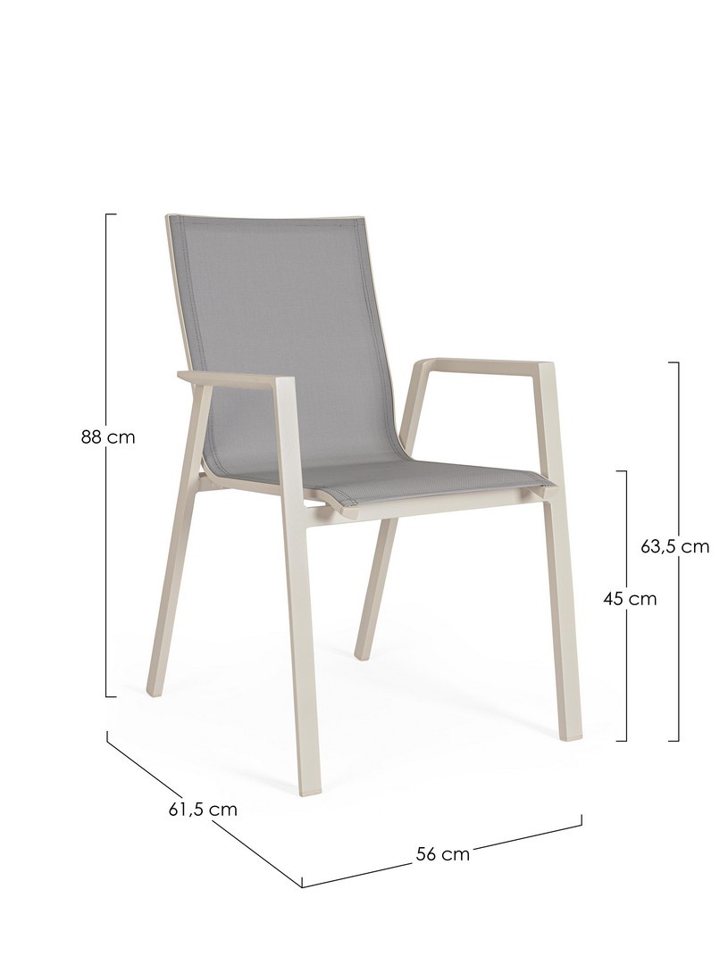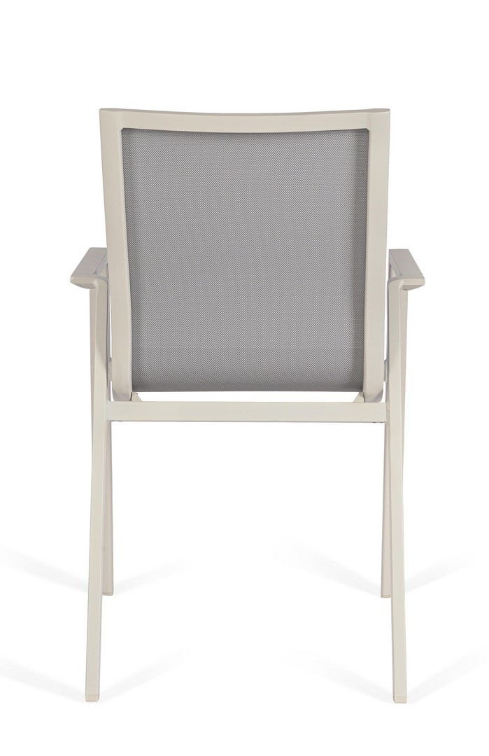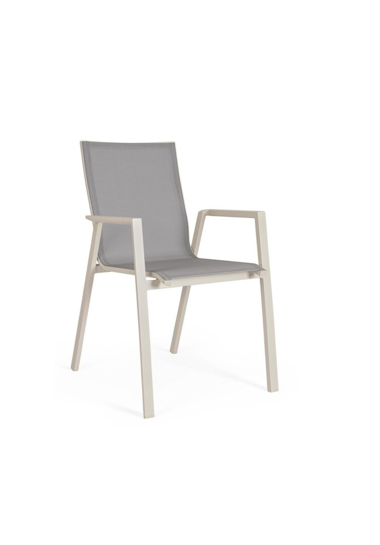 Sedia C-BR Krion , Struttura in alluminio, verniciato a polvere (poliestere). La seduta e lo schienale sono in textilene 1×1. Impilabile.