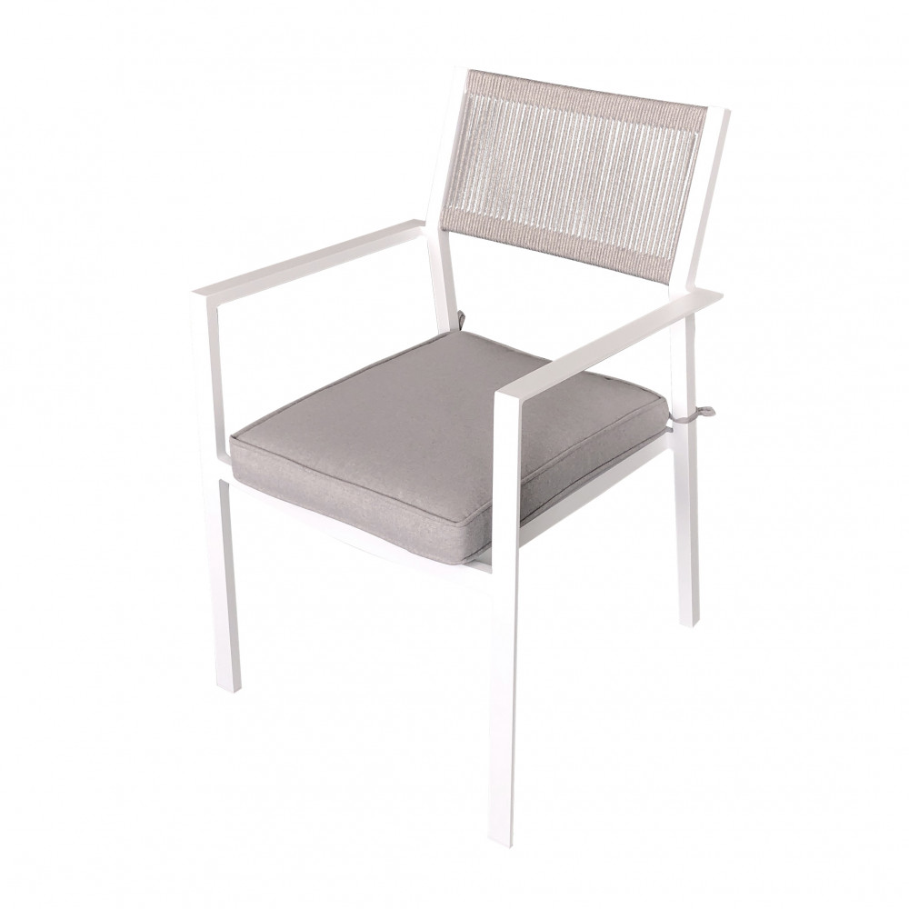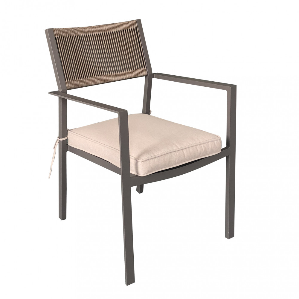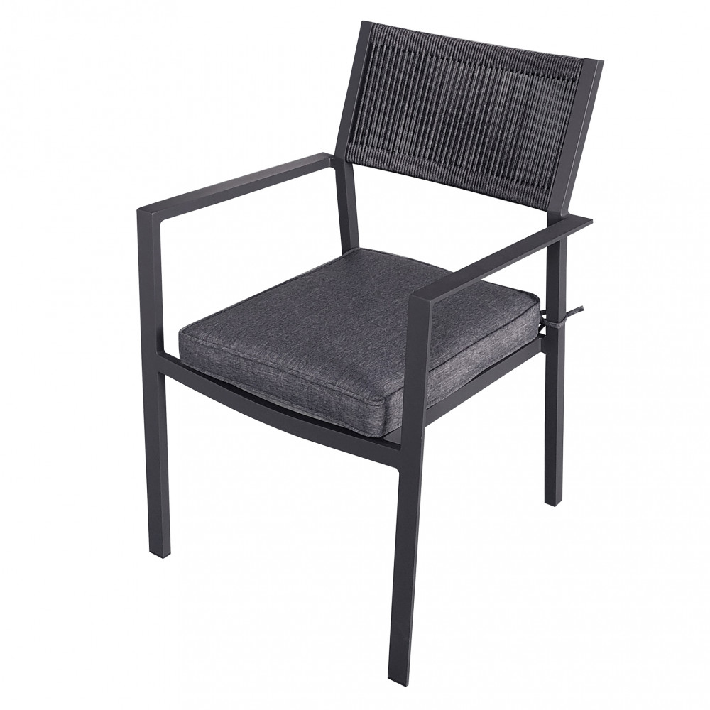 Il design moderno e lineare si abbina con facilità a diversi stili di arredamento outdoor, mentre il cuscino incluso – spesso e confortevole – assicura una seduta piacevole anche durante lunghe cene o momenti di relax. Rivestito in tessuto idrorepellente e sfoderabile, il cuscino è facile da pulire e progettato per resistere all’umidità e ai raggi solari.