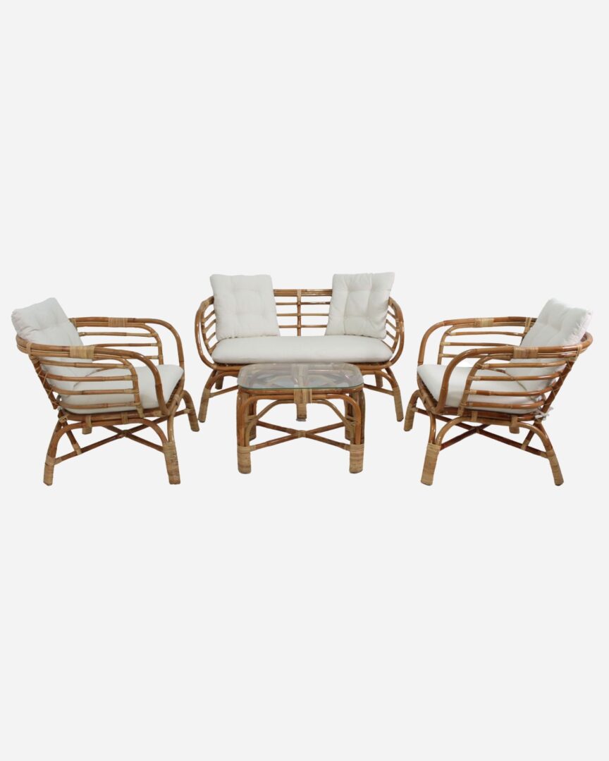 Il Salotto Belize in Rattan è la soluzione perfetta per chi desidera creare uno spazio accogliente e raffinato. Ideale per soggiorni, verande o giardini coperti, questo set coniuga un design elegante e materiali naturali per un’atmosfera rilassante e di classe.