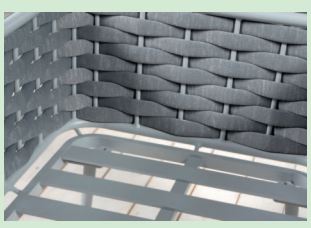 Seduta e schienale: intreccio in corda sintetica di alta qualità, resistente agli agenti atmosferici