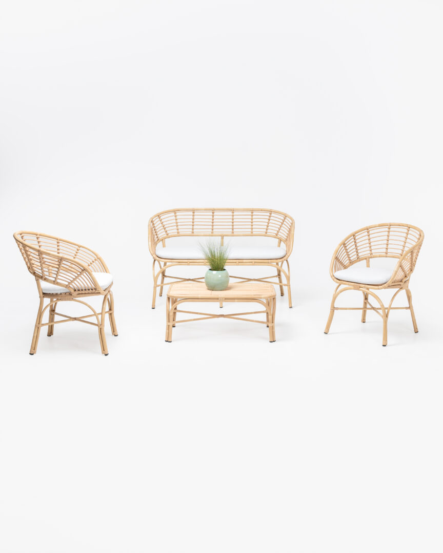 Set Salotto Coconut è la soluzione d’arredo ideale per chi desidera coniugare l’estetica calda e accogliente delle fibre naturali