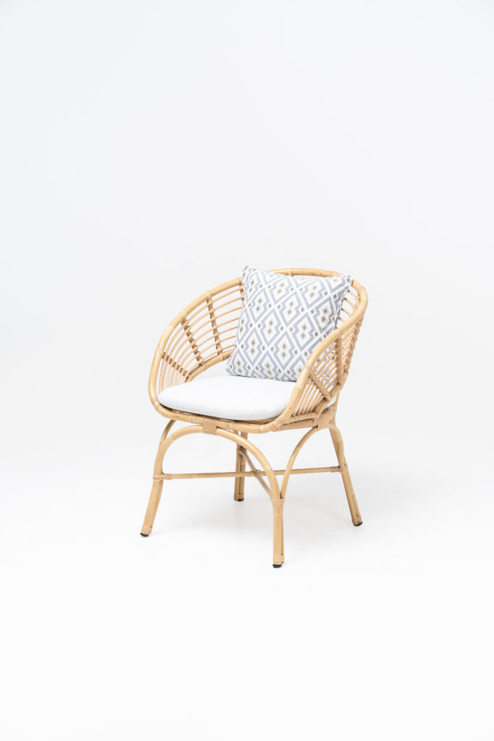 La struttura portante di ogni elemento è realizzata in alluminio pre-verniciato, una scelta tecnica che assicura una leggerezza strutturale ottimale unita a una totale immunità alla ruggine e alla corrosione. Il telaio è interamente rivestito da un intreccio in Polyrattan HQ (High Quality) con finitura natural look: questa fibra sintetica di alta gamma riproduce fedelmente le sfumature e la texture del midollino naturale, ma offre prestazioni superiori in termini di durata, resistendo senza alterazioni ai raggi UV, alle escursioni termiche e all’umidità.