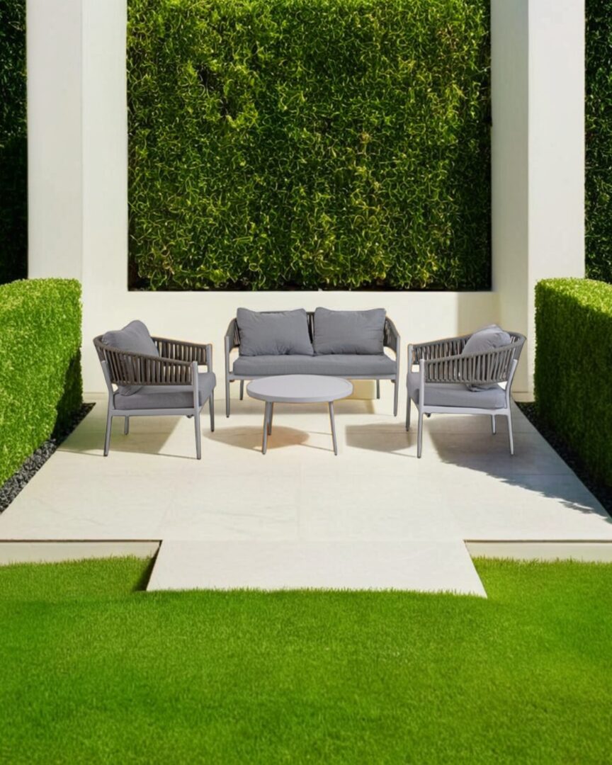 Rendi il tuo spazio all’aperto un angolo di eleganza e comfort con il salotto da giardino Raul. Questo set completo include un comodo divano a due posti, due poltrone accoglienti e un tavolino rotondo, perfetti per creare un’area dedicata al relax o alla socialità, ideale per momenti in compagnia o di puro riposo.