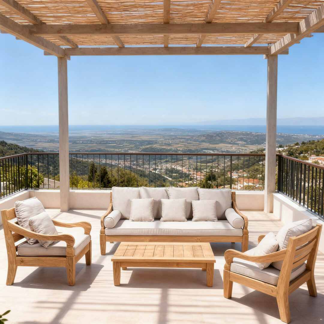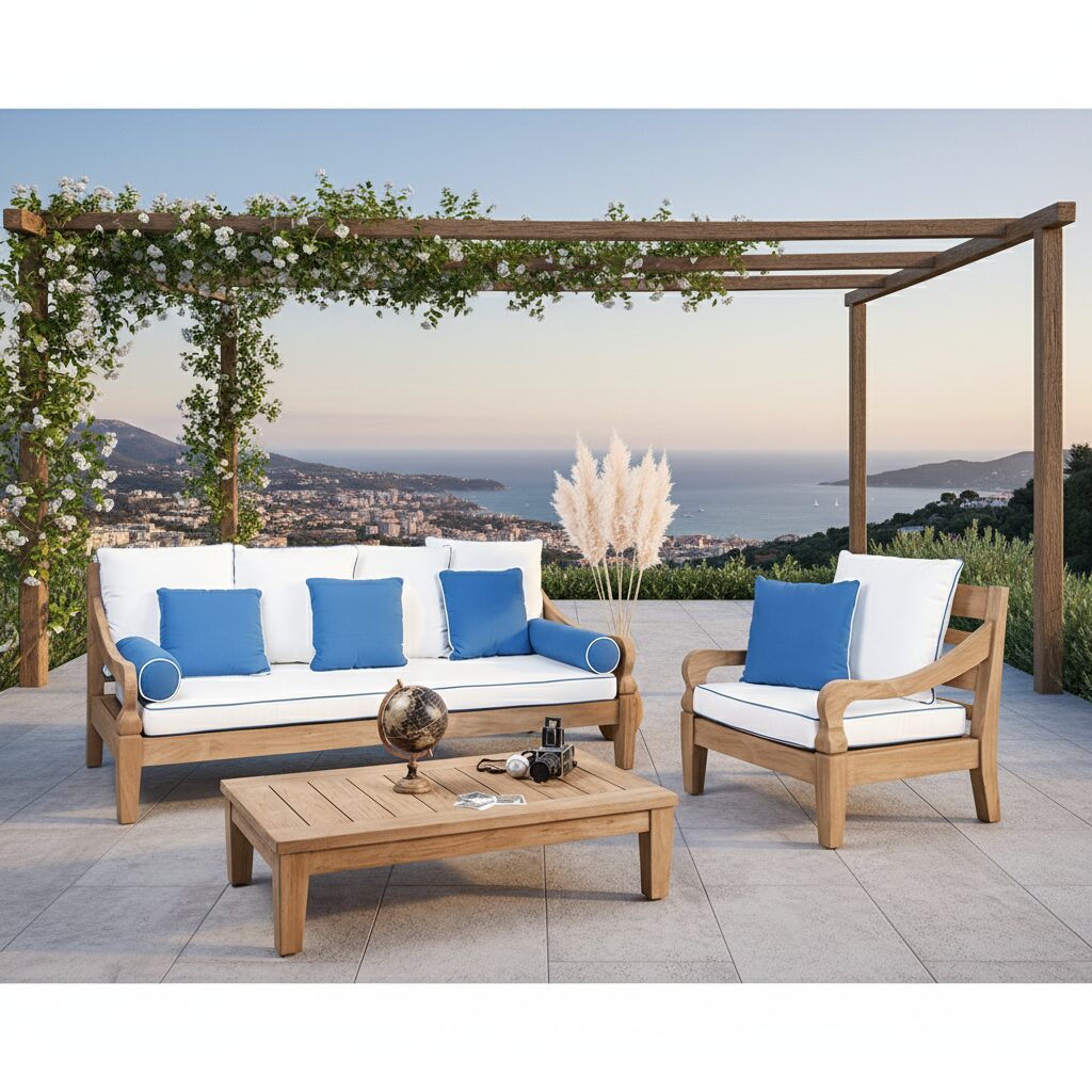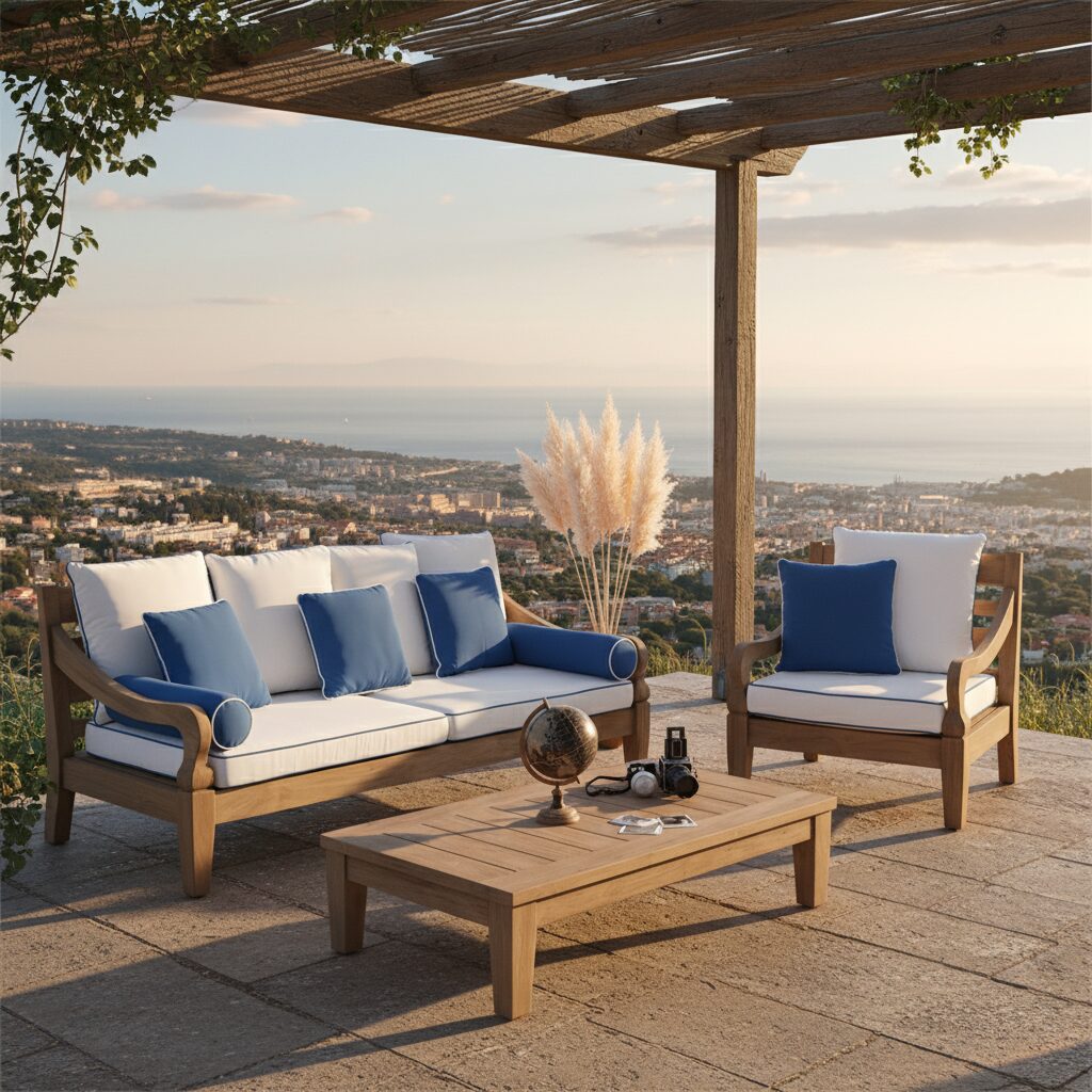 A completare questo set di lusso è la cuscineria inclusa, progettata specificamente per l’uso outdoor. I cuscini, dalla seduta accogliente e sostenuta, sono realizzati con tessuti resistenti garantendo una manutenzione semplice e una bellezza che dura nel tempo. Che sia posizionato in un giardino rigoglioso, in un patio moderno o in una terrazza panoramica, il salotto Java trasforma ogni ambiente in una vera oasi di benessere, celebrando la maestria artigianale e la nobiltà del legno naturale.