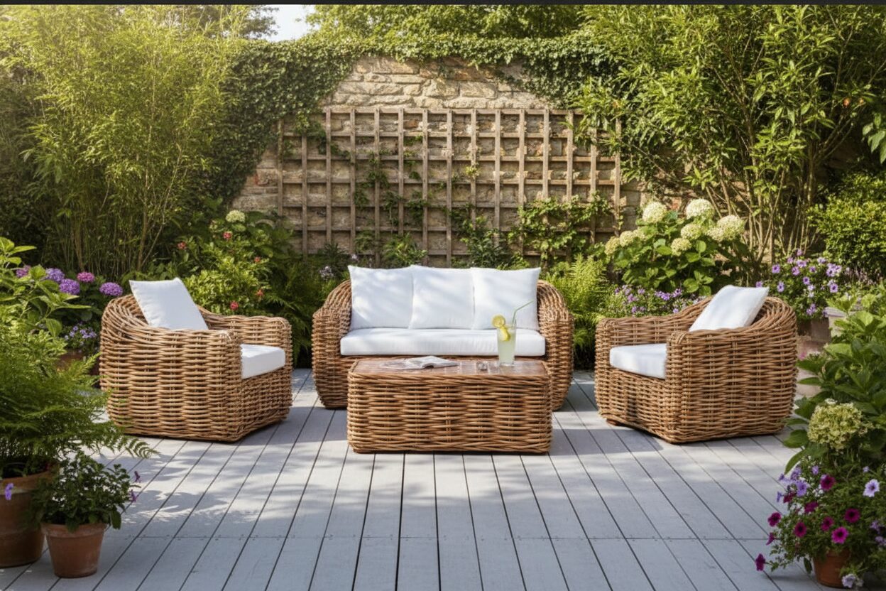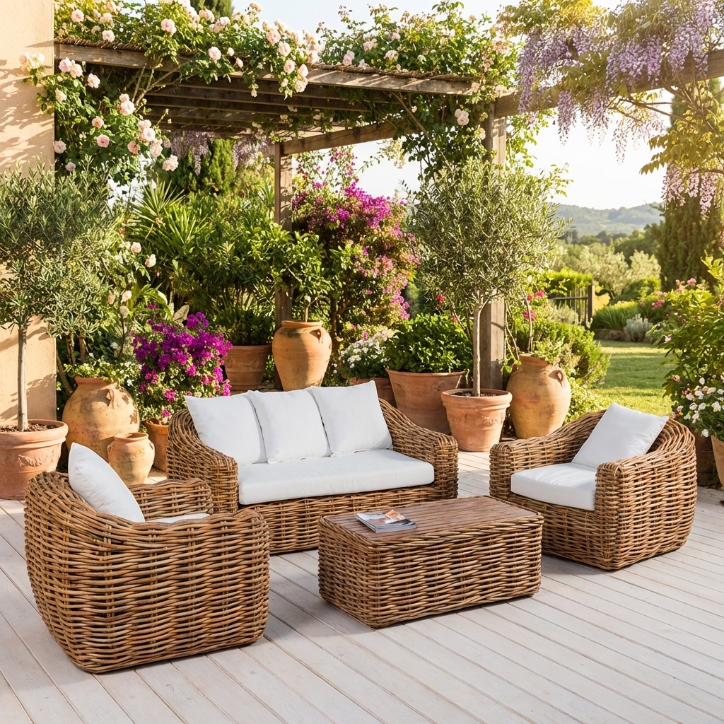 Questo salotto è adatto per arredare spazi interni ed esterni: salotto, soggiorno, sale da pranzo o camere da letto, come verande, gazebo, terrazze e balconi. E’ un prodotto fatto con materiali riciclabili.