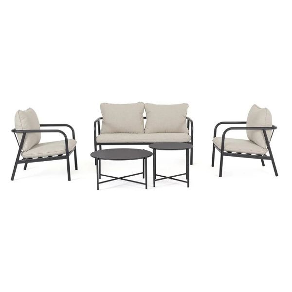 Il salotto da giardino Ostuni incarna un’estetica moderna e funzionale, progettata per trasformare qualsiasi spazio esterno in un’area lounge accogliente e stilosa. Questo set completo si distingue per una configurazione dinamica che comprende un confortevole divano a due posti, due poltrone abbinate e ben due tavolini, permettendo una disposizione versatile e pratica per appoggiare drink o riviste durante i momenti di relax. La solidità dell’intero set è garantita da una struttura in acciaio di alta qualità, sottoposta a una verniciatura a polvere che assicura una protezione superiore contro gli agenti atmosferici e l’usura del tempo, mantenendo un profilo snello ed elegante.