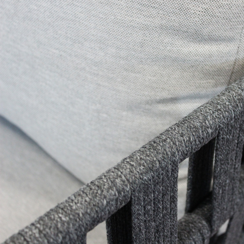 I cuscini, morbidi e avvolgenti, garantiscono il massimo del relax. I cuscini della seduta sono fissi ma rivestiti con tessuto altamente idrorepellente, mentre quelli dello schienale sono completamente sfoderabili, facilitando la pulizia e la manutenzione quotidiana.