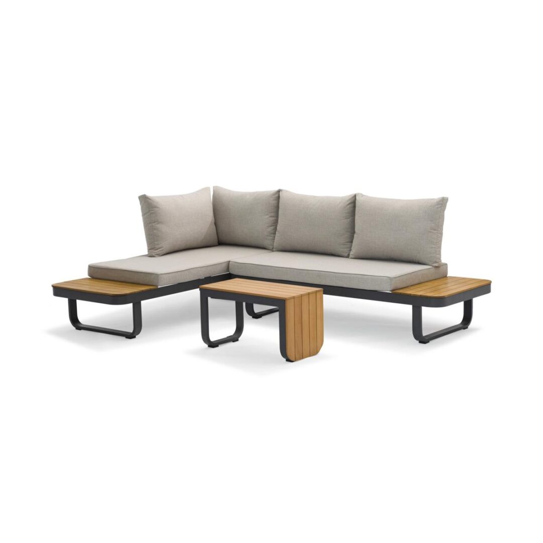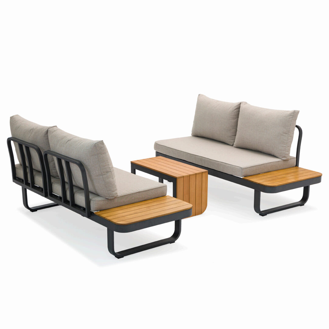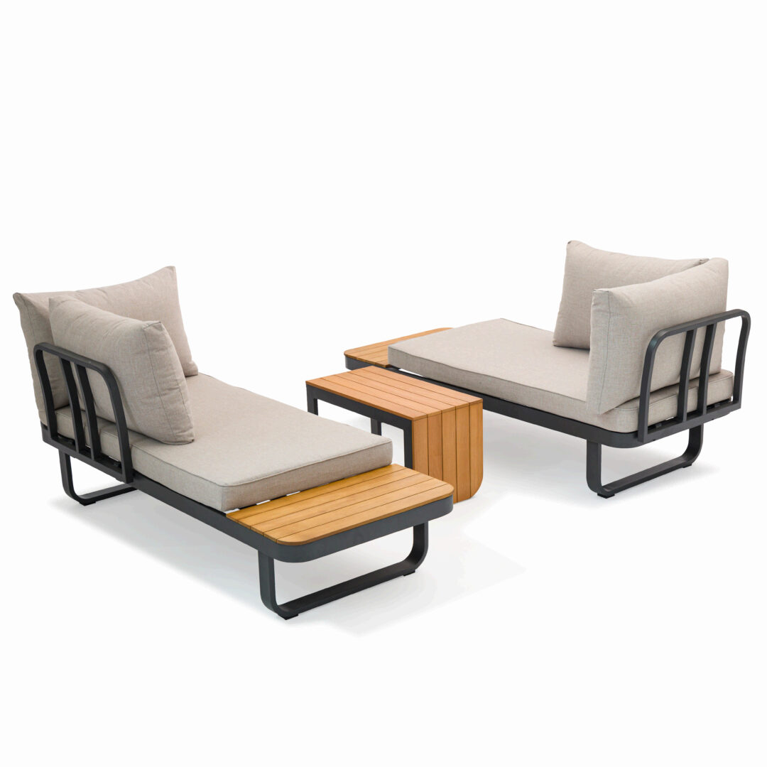 Sia lo schienale che il tavolino laterale si possono spostare con facilità. Grazie a un sistema di incastro innovativo, Sirmione si trasforma con semplicità per rispondere a qualsiasi esigenza di spazio o stile.