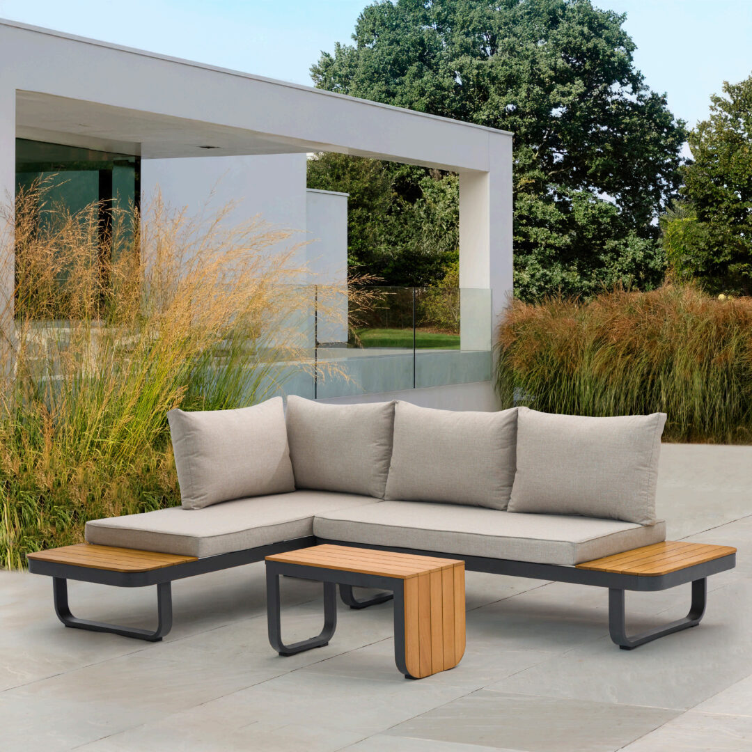 Le superfici superiori e laterali sono in legno di acacia certificato FSC, per un tocco naturale ed elegante.