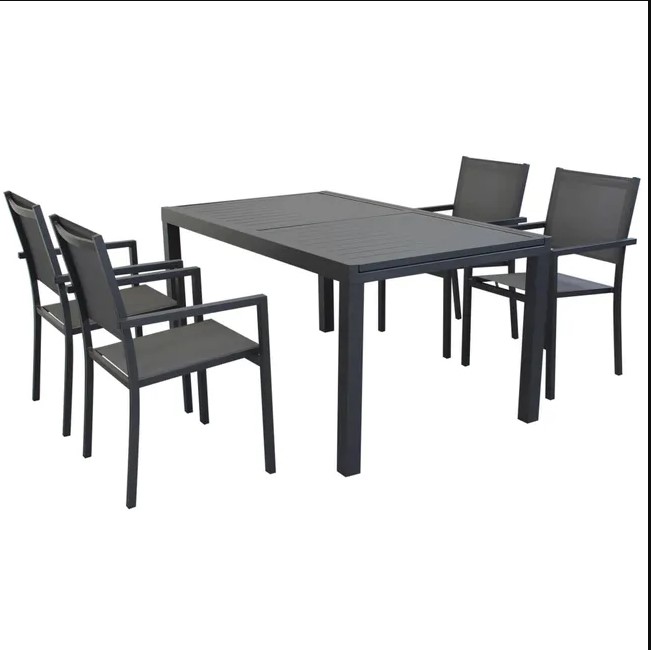 Questo elegante set in alluminio è l’ideale per arredare gli spazi esterni con stile e funzionalità. Realizzato con una struttura robusta e leggera in alluminio, il tavolo è progettato per resistere alle intemperie e garantire una lunga durata. L’alluminio, resistente alla corrosione e facile da mantenere, è combinato con un design moderno che si adatta perfettamente a qualsiasi ambiente esterno, dalle terrazze ai giardini.