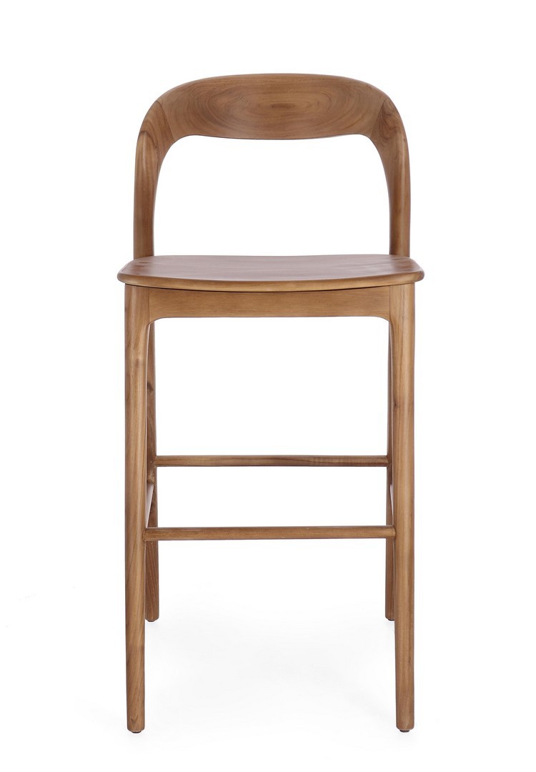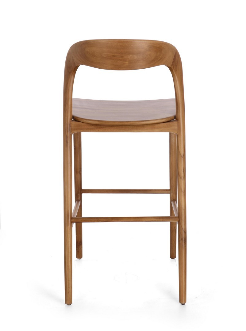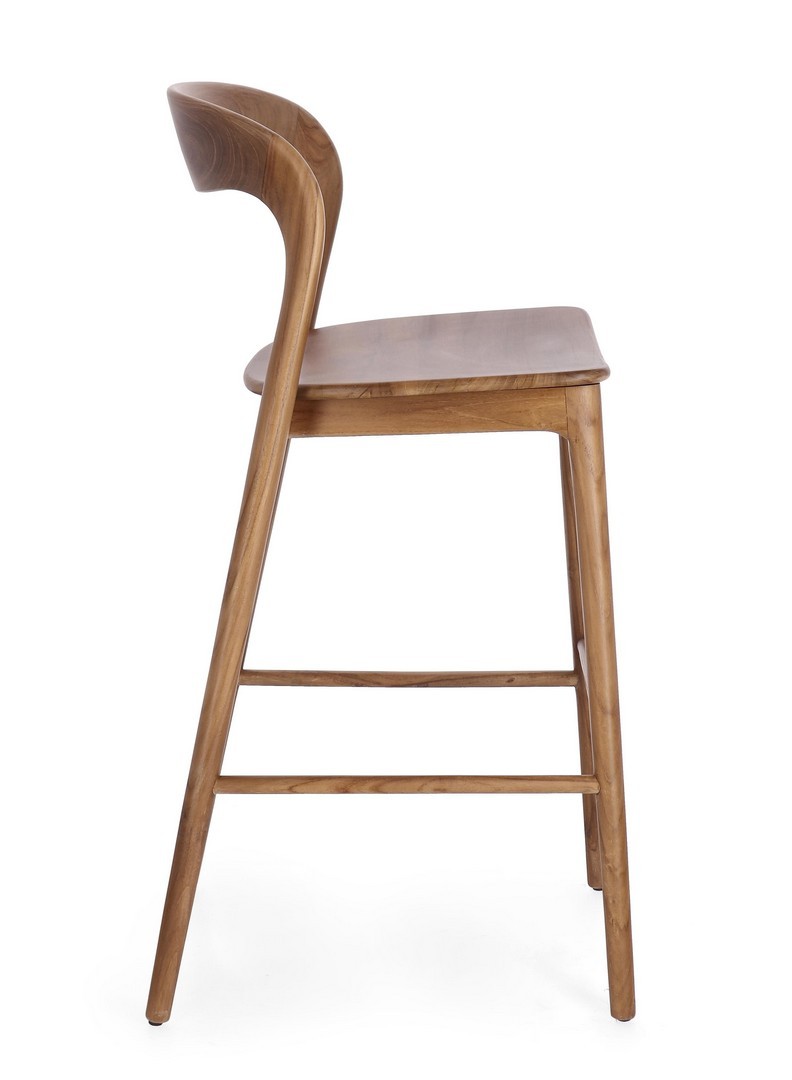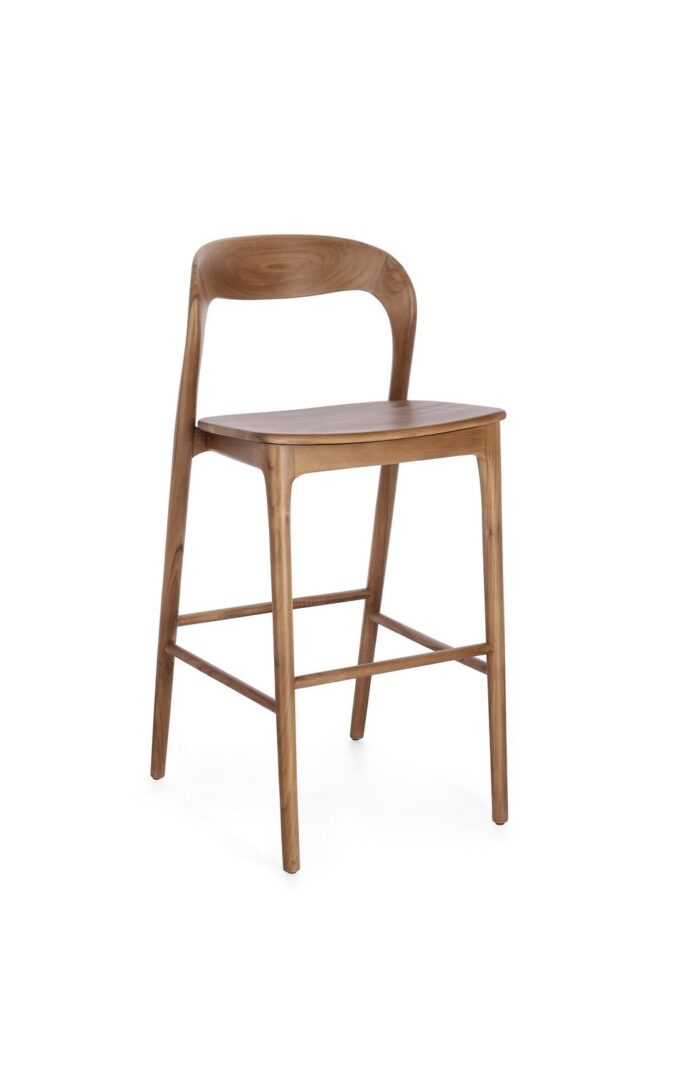 Sgabello Miley , sgabello da bar o cucina in legno massello di teak , finitura naturale con vernice a base di nitrocellulosa. Solo per uso interno.
