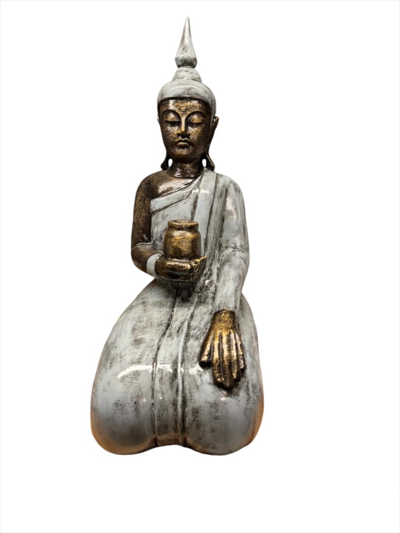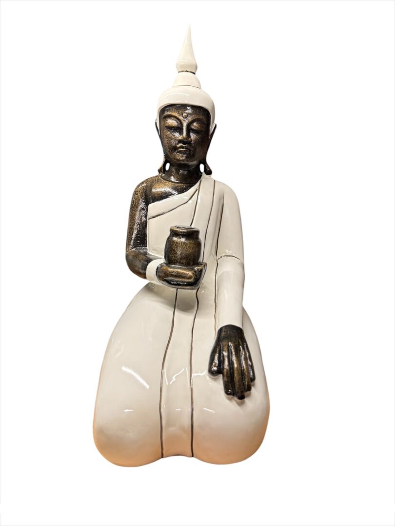 Statua Buddha Inginocchiato 60 , Buddha inginocchiato che indossa abiti colorati e ha le gambe incrociate. Realizzato in una miscela di sabbia lavica naturale e acciaio in fibra. Finitura dipinta a mano disponibile in varie opzioni di colore.. Prodotto artiginale fatto interamente a mano.