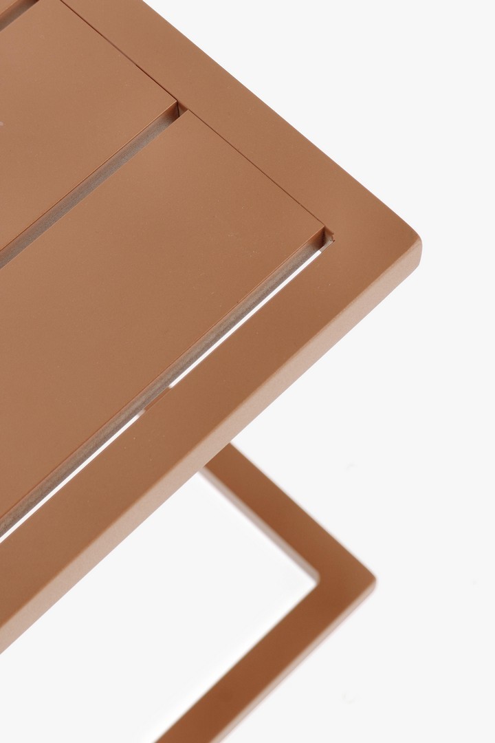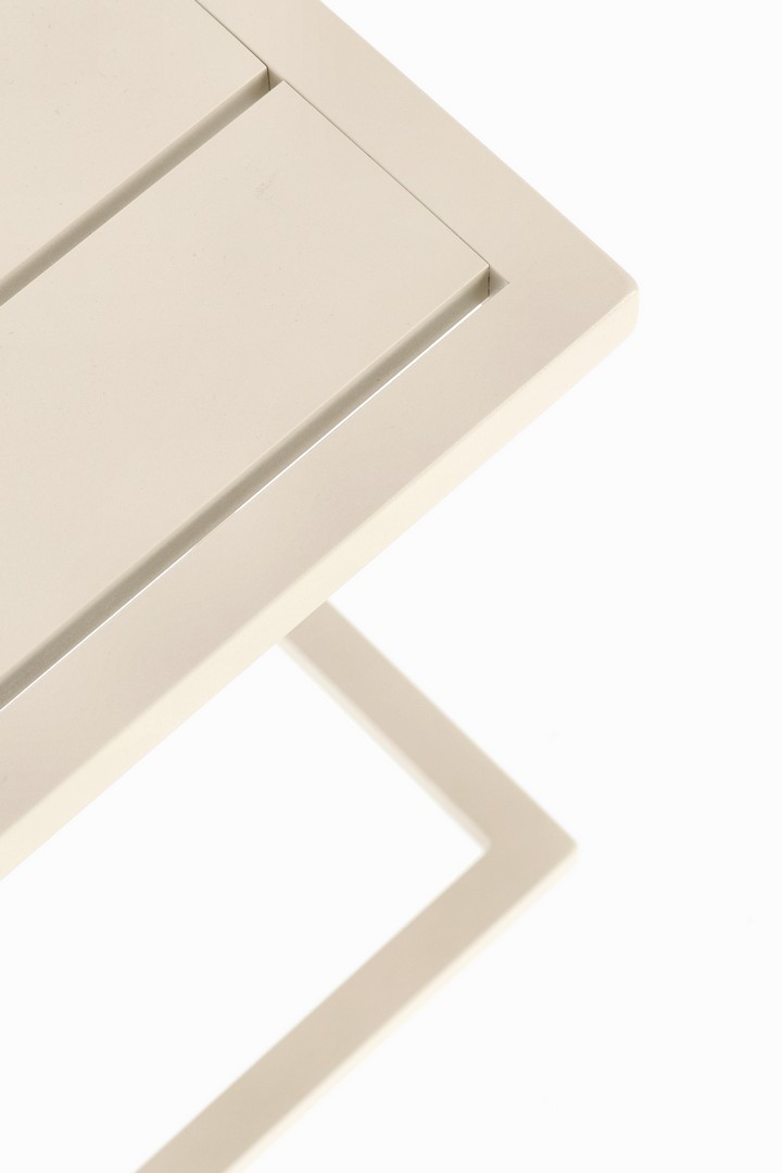 La struttura di questo tavolino è in alluminio verniciato a polvere. Adatto ad uso esterno, per arredare le vostre verande, la vostra piscina, i vostri giardini e il vostro spazio esterno.