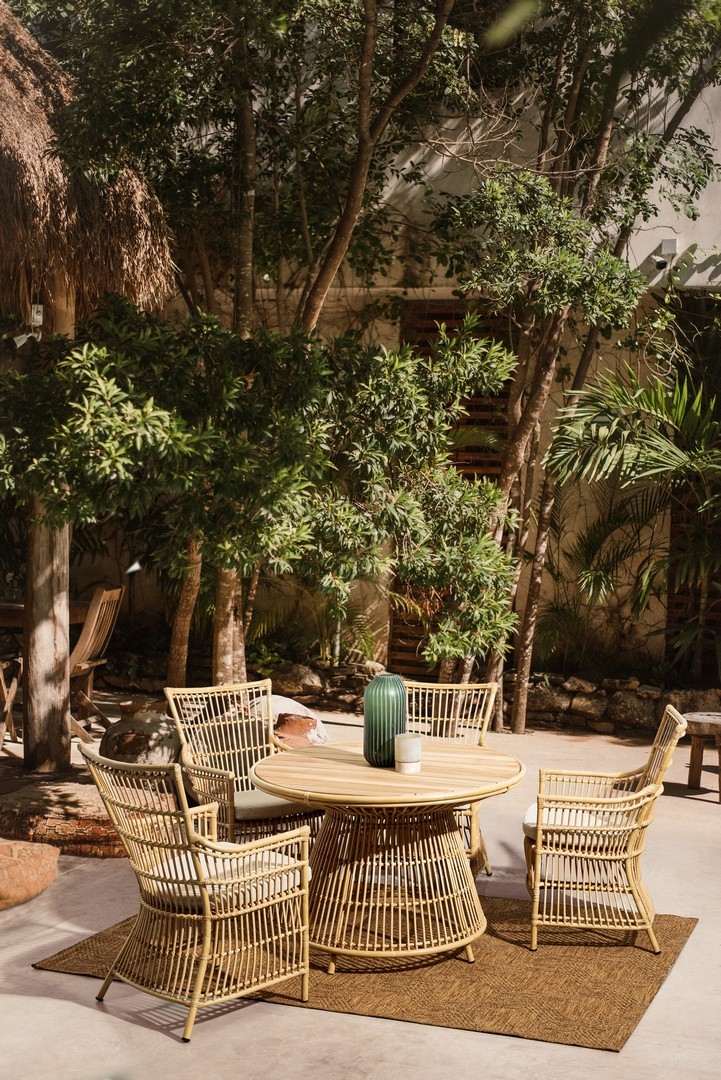 TAVOLO ADELMA D110, la struttura di questo tavolo è in alluminio verniciato a polvere, poliestere, con effetto rattan. Intreccio è in fibra sintetica , tonda 10 mm.