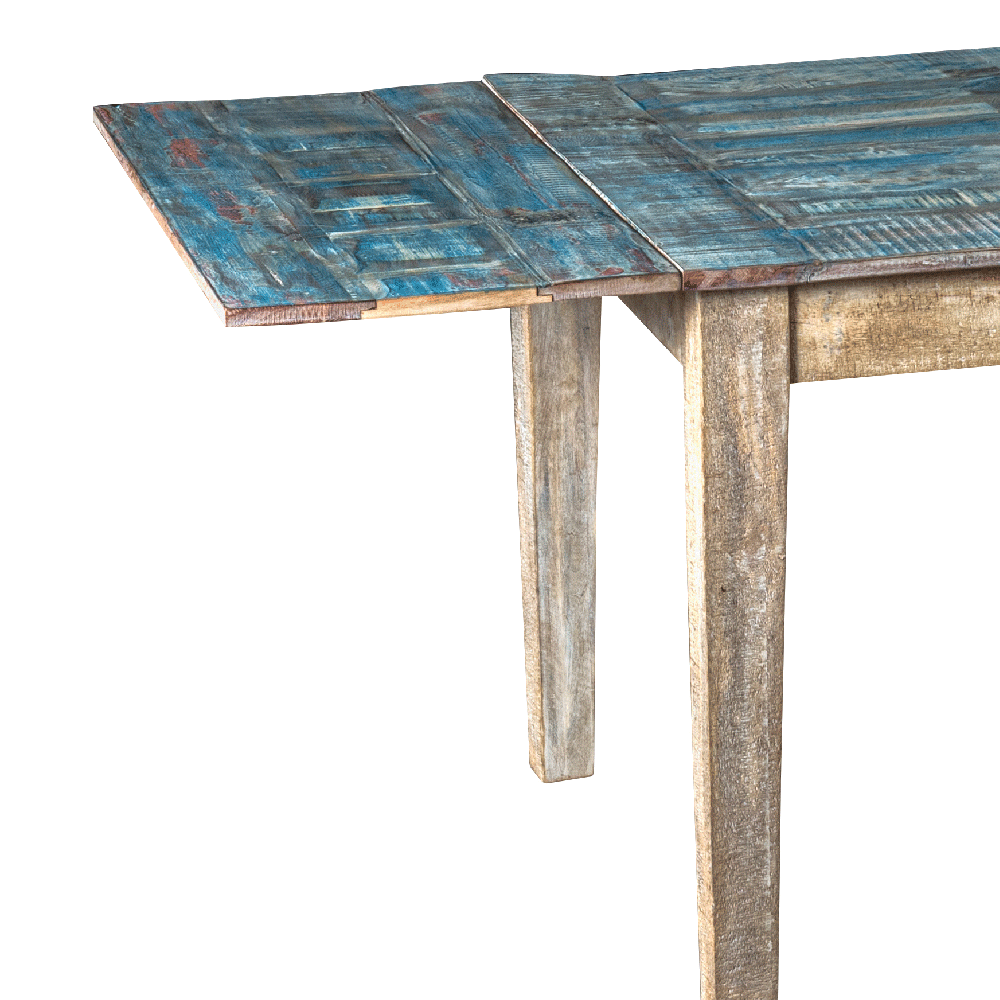 Tavolo Allungabile Biarritz, in legno massello di mango riciclato produzione artigianale, realizzato interamente a mano . Gambe in legno.