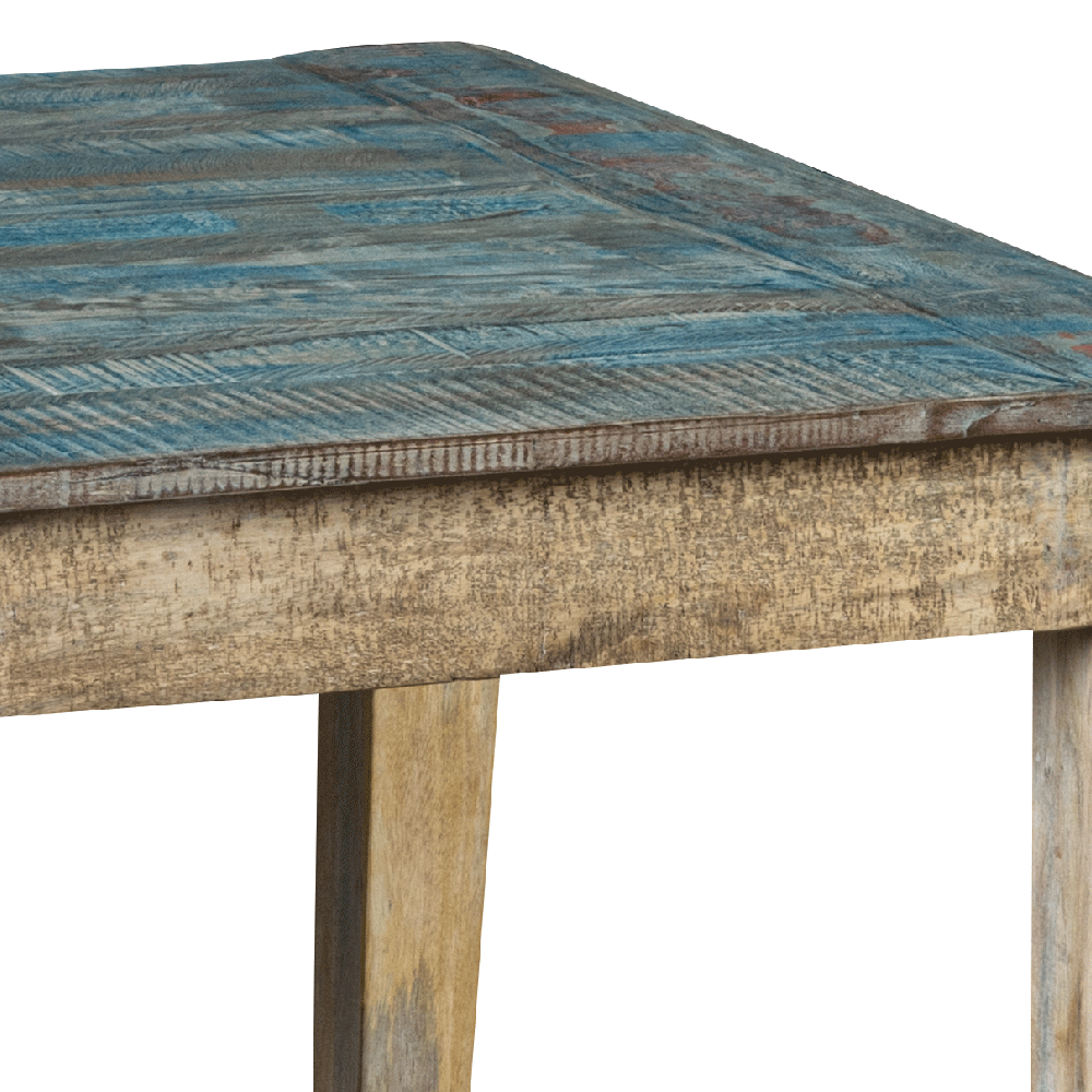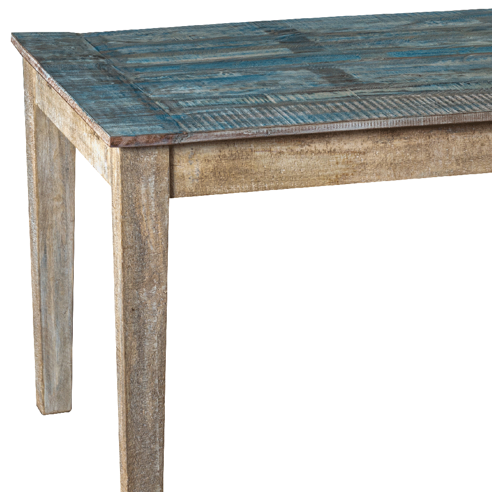 La linea Biarritz è un inno all’eleganza e al fascino della costa atlantica, e questo tavolo ne cattura l’essenza con maestria. Realizzato in legno massello di mango riciclato, ogni dettaglio è stato attentamente curato per portare un tocco di oceano nella tua casa. Le pennellate morbide nelle sfumature dell’azzurro e del bianco conferiscono al tavolo un aspetto fresco e vivace, mentre l’effetto decapato richiama l’immagine dei legni sulla spiaggia modellati dalla salsedine, aggiungendo un elemento di fascino autentico.