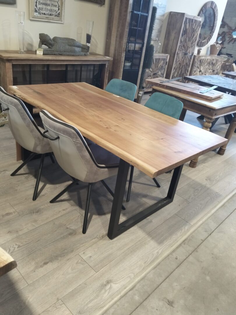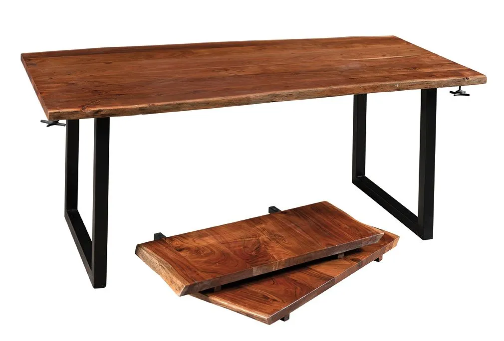 Questo tavolo unisce l’autenticità del legno massello di acacia alla modernità del ferro, creando un perfetto equilibrio tra stile industriale e calore naturale. Il piano, realizzato in legno massello di acacia di alta qualità dona un look caldo e naturale, perfetto se cerchi un effetto legno realistico ma con un tocco contemporaneo. L’acacia, in questo caso, richiama le venature tipiche di questo legno, con sfumature che spaziano dal marrone chiaro al più intenso, donando un aspetto accogliente e sofisticato all’ambiente.
