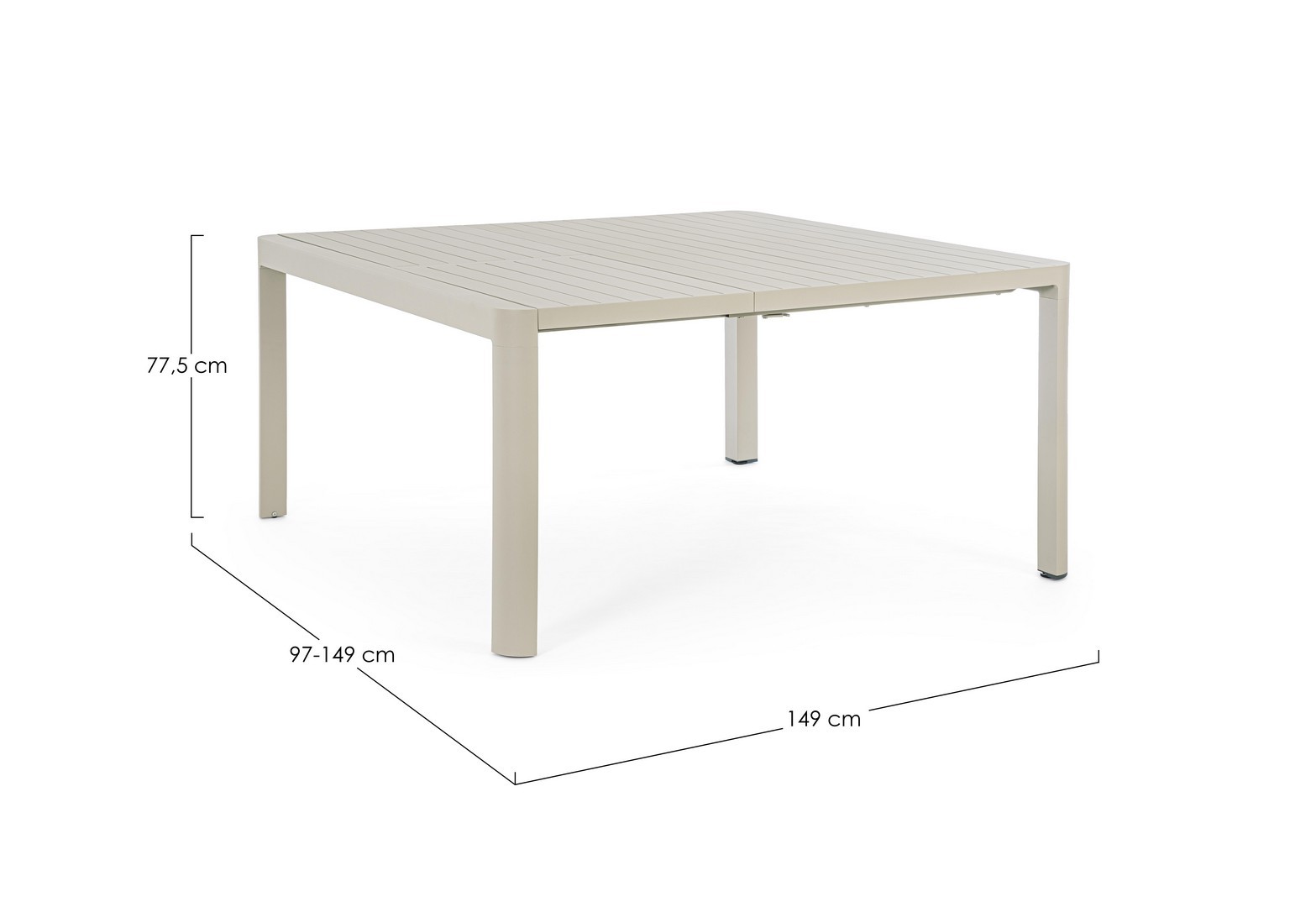 TAVOLO ALLUNGABILE KIPLIN 149X97/149 , Struttura in alluminio, verniciato a polvere (poliestere). Tavolo allungabile con apertura telescopica. viteria in acciaio galvanizzato.  gambe da assemblare.