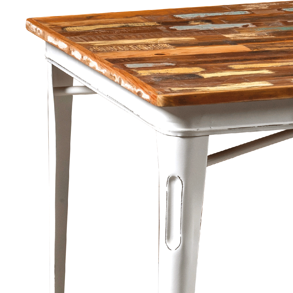 Tavolo Bar Quadrato Cook , in legno massello di acacia di produzione artigianale, realizzato interamente a mano . Struttura del tavolo in ferro.