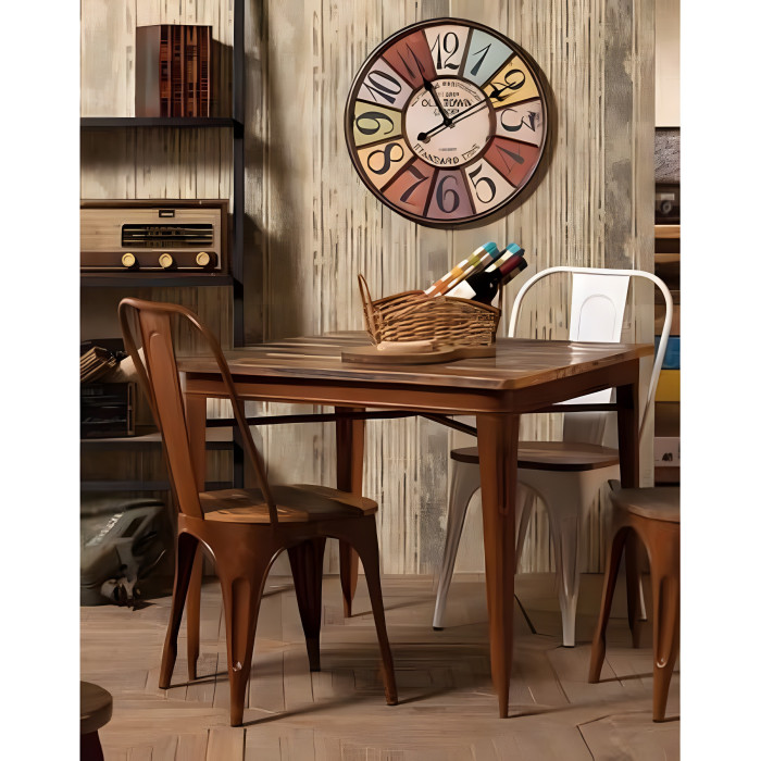 Il piano del tavolo è realizzato in legno massello di acacia, conferendo calore e autenticità al suo design. La base in ferro vintage aggiunge un tocco industriale, richiamando lo stile dei vecchi arredi industriali. Questa combinazione di materiali e colori rende il tavolo Cook versatile, adatto sia per ambienti in stile industriale che in contesti abitativi con uno stile etnico e vintage.