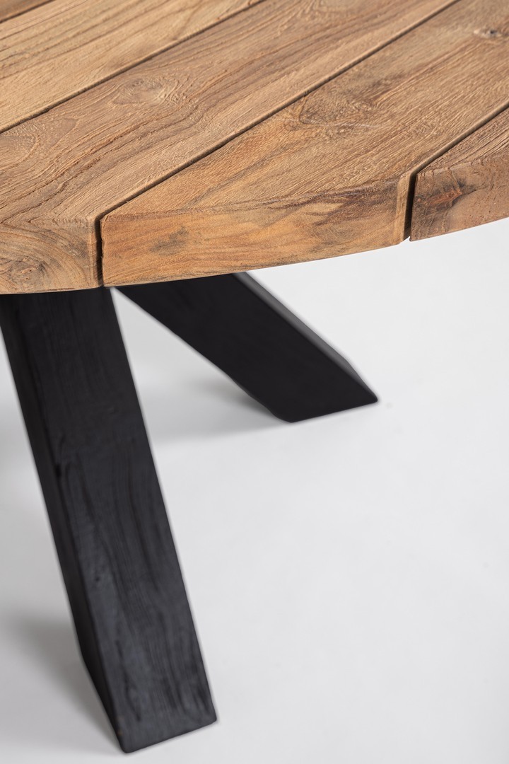 TAVOLO RODERICK D150 , tavolo in legno di Teak riciclato – svlk (legno certificato proveniente da foreste sostenibili). Il piano ha la finitura naturale spazzolata.