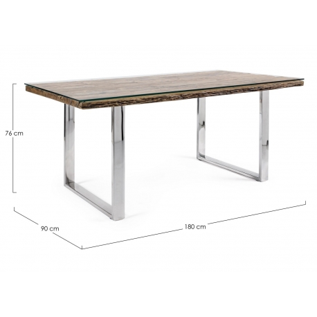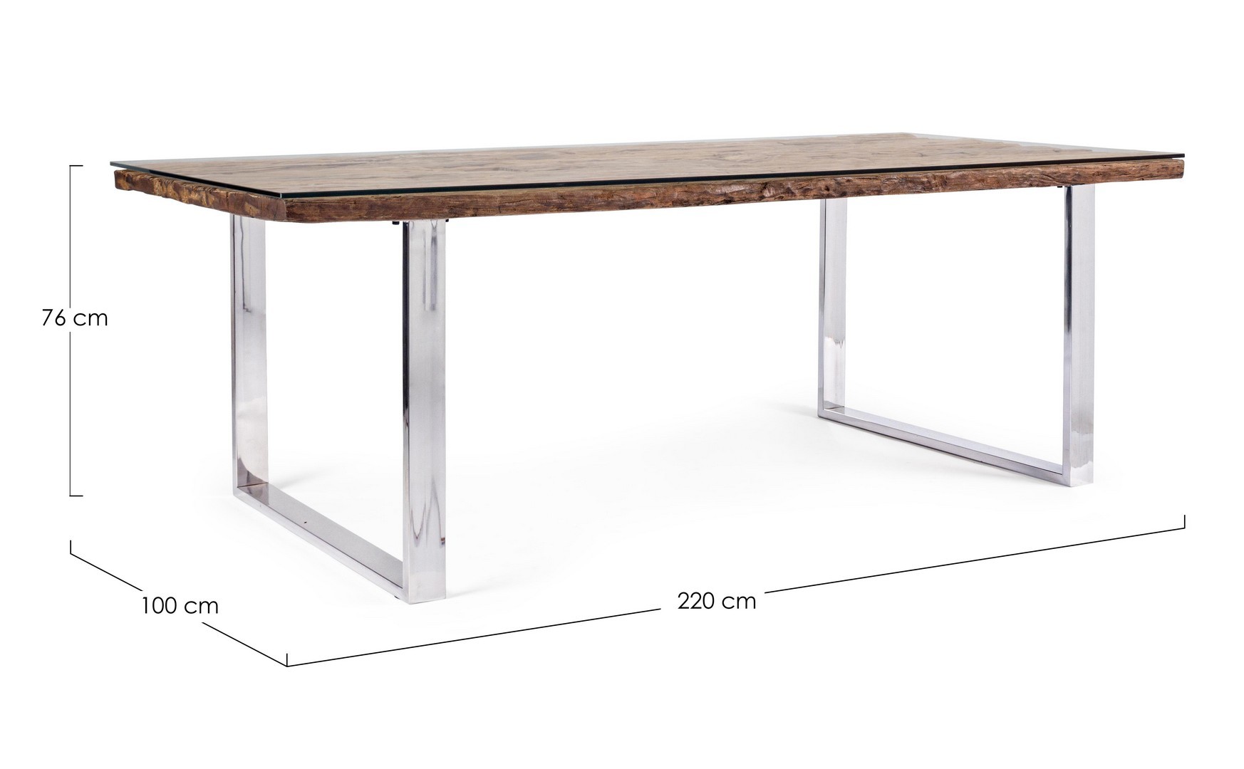 Piano in legno con sezioni originali  di tronco. Gambe in acciaio verniciato a polvere epossidica. top in vetro temperato