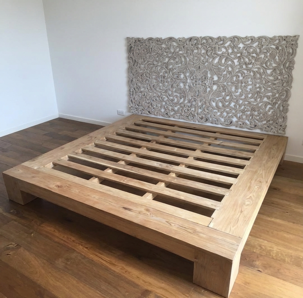 Testata  Intagliata Mandala 180, testata per letto,muro ,decoro , made in india . Colore decapato bianco. Intaglio mandala.