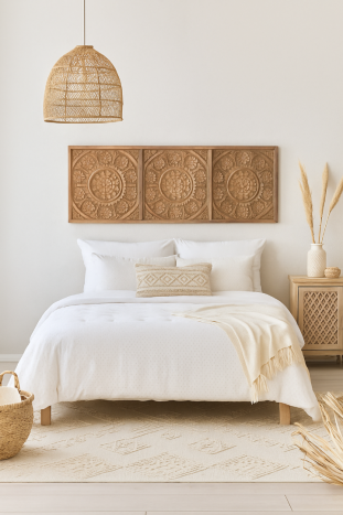 Testata legno India Un complemento d’arredo attuale e di grande personalità, perfetto per valorizzare e vestire con gusto la tua camera da letto.
