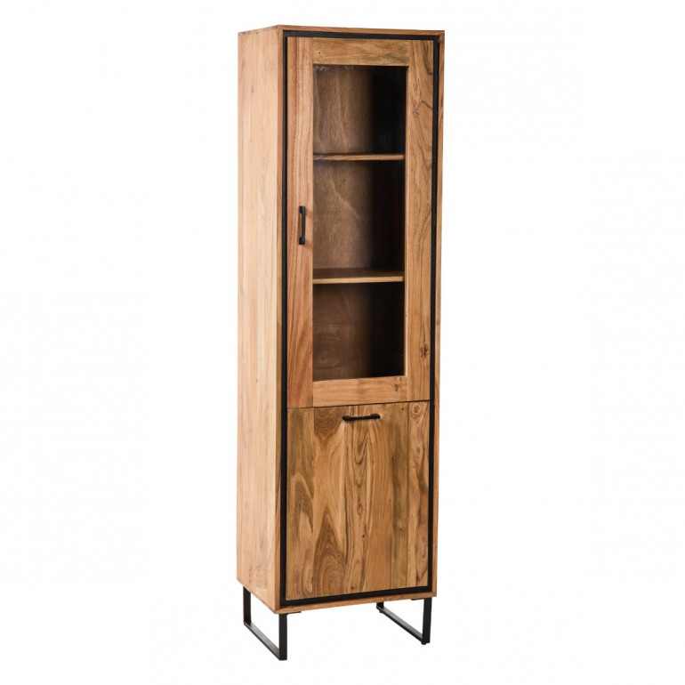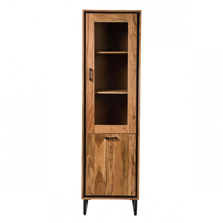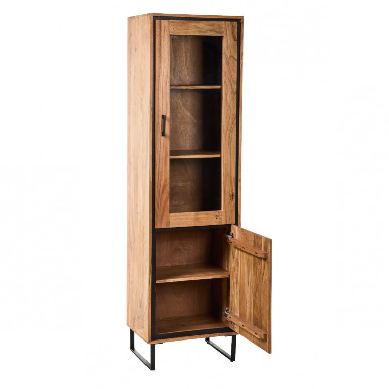 Vetrina Farlez , costruita interamente in vero legno massello di acacia. Composta da 2 ante, una in legno una in vetro, con mensole interne.