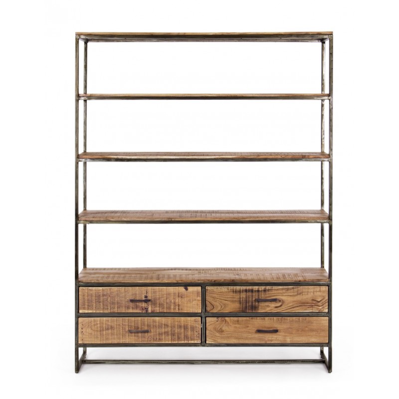 Libreria Elmer 4 Css, libreria in legno massello di acacia con struttura in ferro battuto.