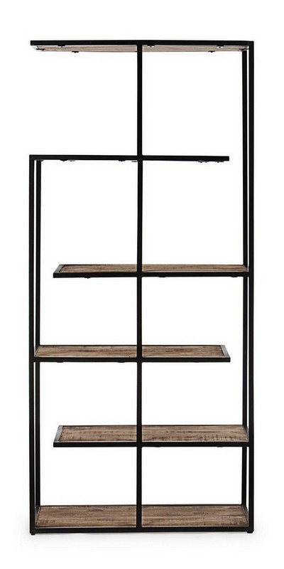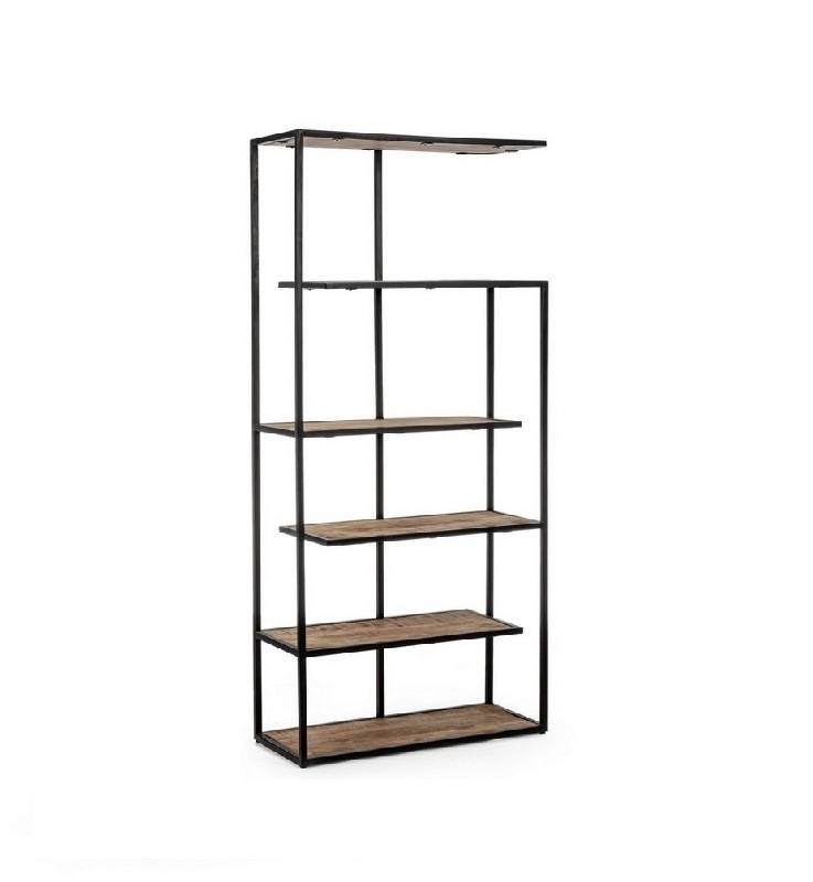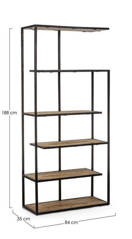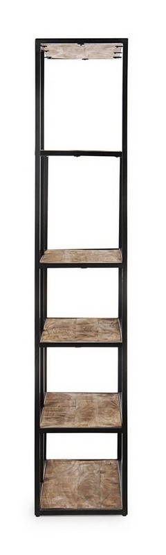 Libreria industrial in legno massello di mango e struttura in acciaio verniciato. Composta da 5 ripiani.