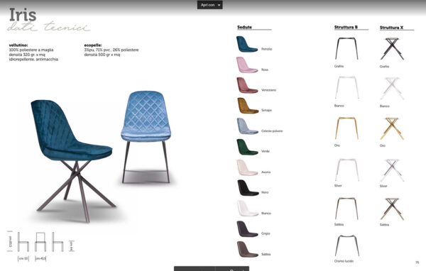 Sedia Iris è disponibile in due varianti con vari colori ciascuno: